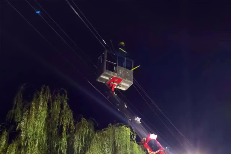 故障發(fā)生后,國(guó)網(wǎng)周口供電公司立即啟動(dòng)惡劣天氣應(yīng)急預(yù)案,并通過(guò)手機(jī)短信傳達(dá)到每位職工。雨勢(shì)稍微放緩后,各縣市供電公司迅速派出應(yīng)急搶修分隊(duì),出動(dòng)搶修人員1389人,搶修車(chē)輛303輛。在雨中,大家分工協(xié)作,爭(zhēng)分奪秒完成每一道工序,一部分搶修人員排查線路,消除安全隱患,防止次生災(zāi)害;一部分搶修人員快速投入到搶修工作中。