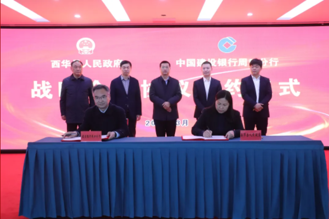 胡偉中副行長代表建行周口分行與西華縣政府簽訂戰(zhàn)略合作協(xié)議