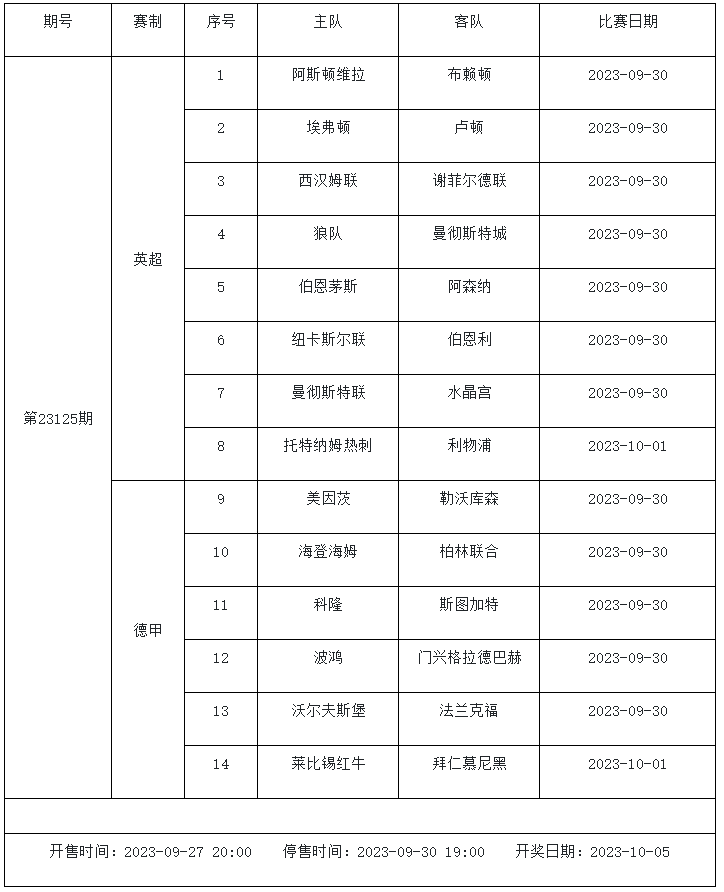 萊比錫周中德國杯3:2擊敗韋恩,各項賽事取得6連勝,出色的防守能力是萊比錫在今夏大失血之后依舊能保持競爭力的關(guān)鍵。在德甲賽季初的5場比賽里萊比錫打進(jìn)14球僅失4球,是目前德甲失球最少的球隊之一,以亨利西斯+西馬坎+盧科巴+勞姆的后防組合功不可沒。拜仁上輪聯(lián)賽7:0血洗波鴻,凱恩上演帽子戲法,目前打進(jìn)7球排在德甲射手榜第2的位置。目前隊內(nèi)主力前腰穆西亞拉因傷無法出戰(zhàn),舒波莫廷替代他的位置,和科曼、薩內(nèi)以及凱恩梳理球隊攻擊線,球隊的替補(bǔ)席上還有穆勒、格雷茨卡和格拉布里等眾多進(jìn)攻好手,球隊主帥圖赫爾能夠打出的牌還有不少。兩支球隊在本賽季初的德國超級杯中有過交手,當(dāng)時拜仁以0:3的比分不敵萊比錫,當(dāng)時凱恩還未加入球隊,并非最強(qiáng)陣容出戰(zhàn),經(jīng)歷了多場比賽的磨合之后,拜仁有信心能夠復(fù)仇對手全身而退。足球彩票勝負(fù)游戲(14場和任選9場)第23125期賽程: