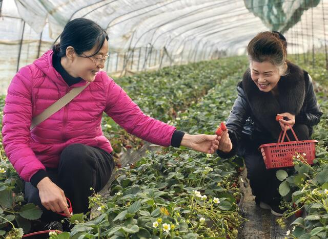 活動當(dāng)天,春風(fēng)和煦,萬物復(fù)蘇。在分行工作人員的陪同下,老同志們首先來到生機盎然的草莓采摘園。步入大棚,果香撲鼻,綠葉掩映下是一顆顆鮮紅飽滿的草莓。大家手提小籃,穿梭在田壟間,一邊精心挑選成熟的果實,一邊親切交談,回憶往昔奮斗歲月,分享生活點滴,歡聲笑語此起彼伏。指尖輕觸,采擷的是春日的甘甜,更是相聚的喜悅。