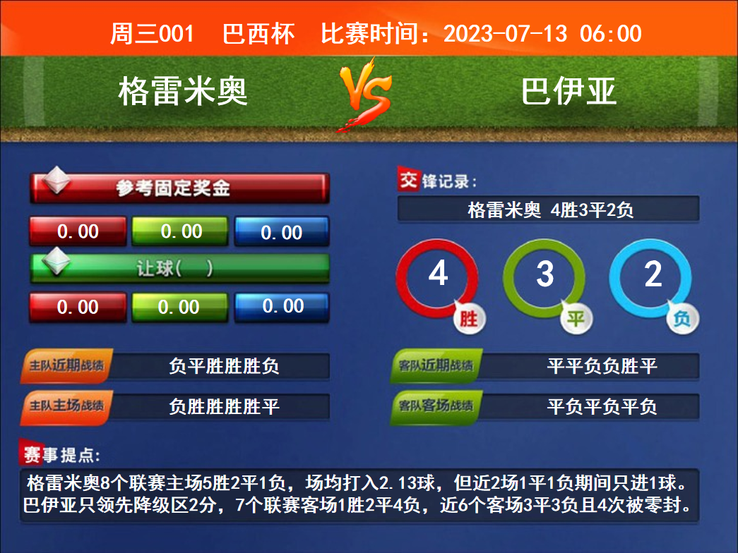 周三競(jìng)彩足球強(qiáng)檔:格雷米奧勝率不俗 圣何塞5戰(zhàn)不勝