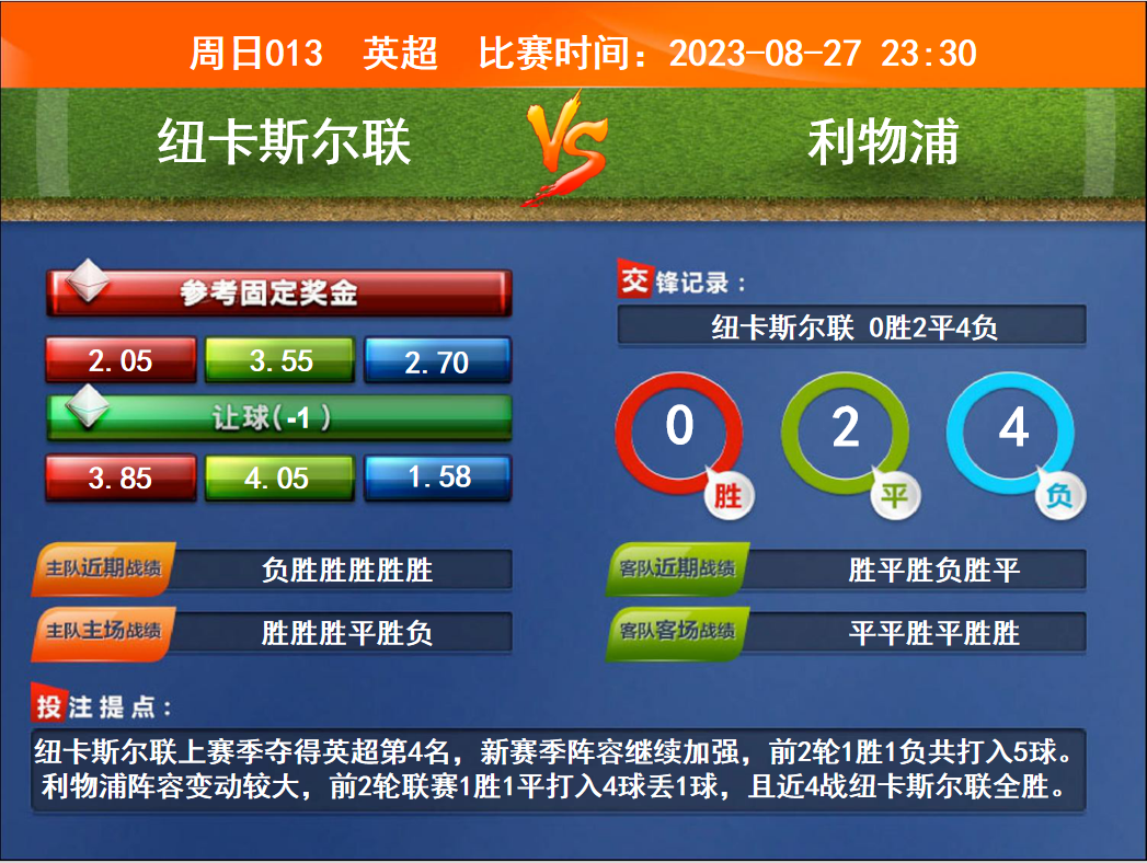 周日競(jìng)彩足球強(qiáng)檔:紐卡斯?fàn)栍嚱鹗?拜仁踏上衛(wèi)冕之旅