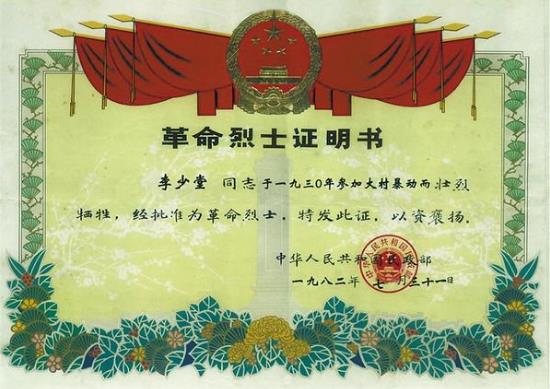 李少堂,河南鹿邑人,1925年背井離鄉(xiāng)流落到連云港,1928年加入中國共產(chǎn)黨,1930年任中共東海中心縣委軍事委員,參與領(lǐng)導(dǎo)大村暴動(dòng)失敗后,被國民黨反動(dòng)派殺害。