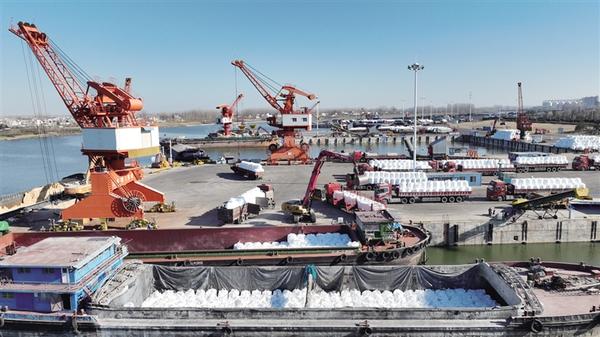 初冬的沙潁河畔,臨港開(kāi)發(fā)區(qū)呈現(xiàn)出一派繁忙景象。在中心港范營(yíng)作業(yè)區(qū),岸橋吊臂有序起落,集卡車(chē)輛川流不息。